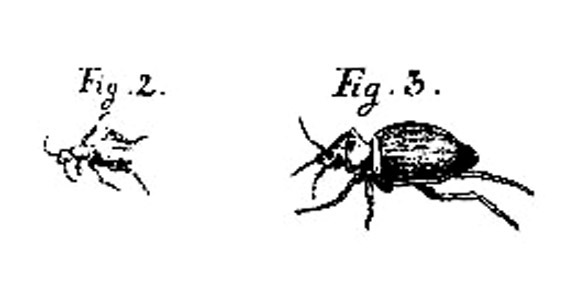 The first quotation can be traced back to Daniel Rolander (1750) who first described the behavior of a particular Cicindela (=Brachinus) and represented it chased by a Carabus (=Calosoma) inquisitor (“der Carabus, ihr Versolger”).
