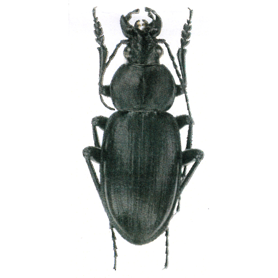 Length 23-25 mm. C. (Carabomimus) enigmaticum is characterized by a transverse pronotum, slightly enlarged behind with round hind angles. elongated elytra, flat, almost obliterated, elytral sculpture, with shining small foveae on the primary intervals and just an hint of raised ribs corresponding to the secondary and tertiary intervals. The upperside of the body is shining black, showing some greenish metallic lustre.
